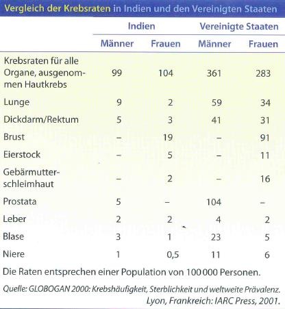 Noch einmal: Curcumin ist typisch für indisches Essen. Hat die oben genannten Eigenschaften. Kann also tatsächlich verantwortlich sein für die jetzt folgende Tabelle. Staunen Sie mit: