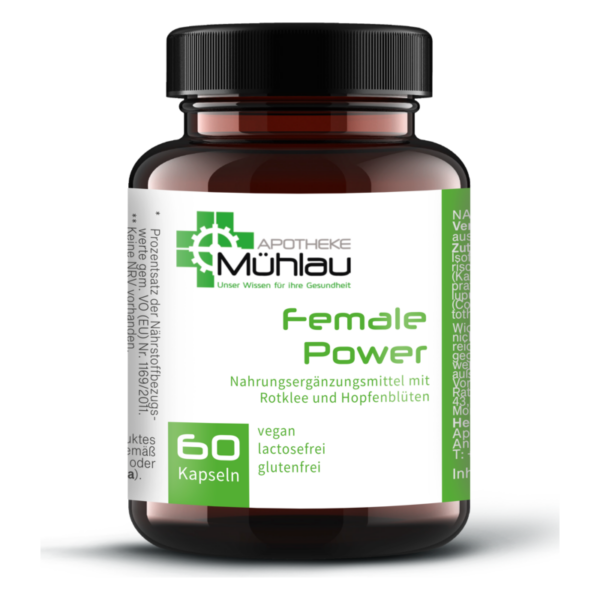 Sojabohnensamen-Extrakt (Glycine max; 10% Isoflavone), Salbeiblatt-Extrakt (Salvia officinalis; 2% Ätherische Öle), Überzugsmittel: Hydroxypropylmethylcellulose (Kapselhülle), Rotkleeblatt- und blüten-Extrakt (Trifolium pratense; 8% Isoflavone), Hopfenblüten-Extrakt (Humulus lupulus; 4% Flavone), Schopftintlingfruchtkörper-Extrakt (Coprinus comatus; 30% Polysaccharide), Calcium-D-pantothenat, Pyridoxal-5‘-phosphat (P-5-P).