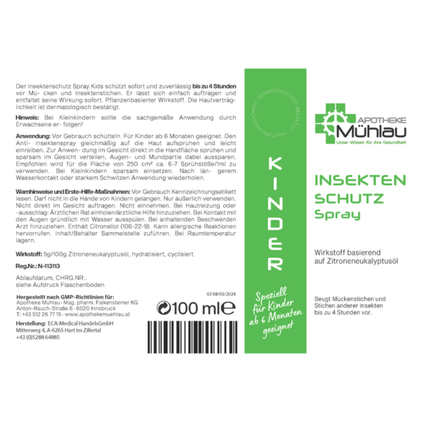 Vor Gebrauch schütteln. Für Kinder ab 6 Monaten geeignet. Den Anti-Insektenspray gleichmäßig auf die Haut aufsprühen und leicht einreiben. Zur Anwendung im Gesicht direkt in die Handfläche sprühen und sparsam im Gesicht verteilen, Augen- und Mundpartie dabei aussparen. Empfohlen wird für die Fläche von 250 cm² ca. 6-7 Sprühstöße/1ml zu verwenden. Bei Kleinkindern sparsam einsetzen. Nach längerem Wasserkontakt oder starkem Schwitzen Anwendung wiederholen.