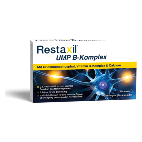 Restaxil® UMP B- Komplex ist ein Nahrungsergänzungsmittel mit dem Uridinmonophosphat (UMP), dem gesamten Vitamin B- Komplex und Calcium