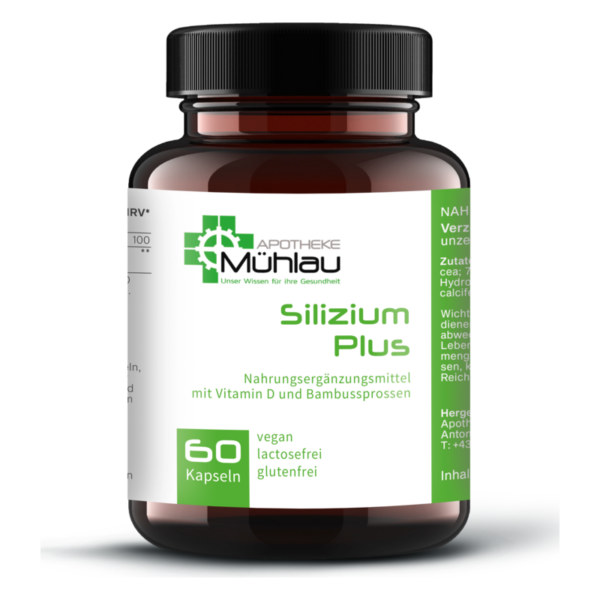 Bambussprossen-Extrakt (Bambusa arundinacea; 75% Natural Silica), Trennmittel: Calciumcarbonat, Hydroxypropylmethylcellulose (Kapselhülle), Cholecalciferol.